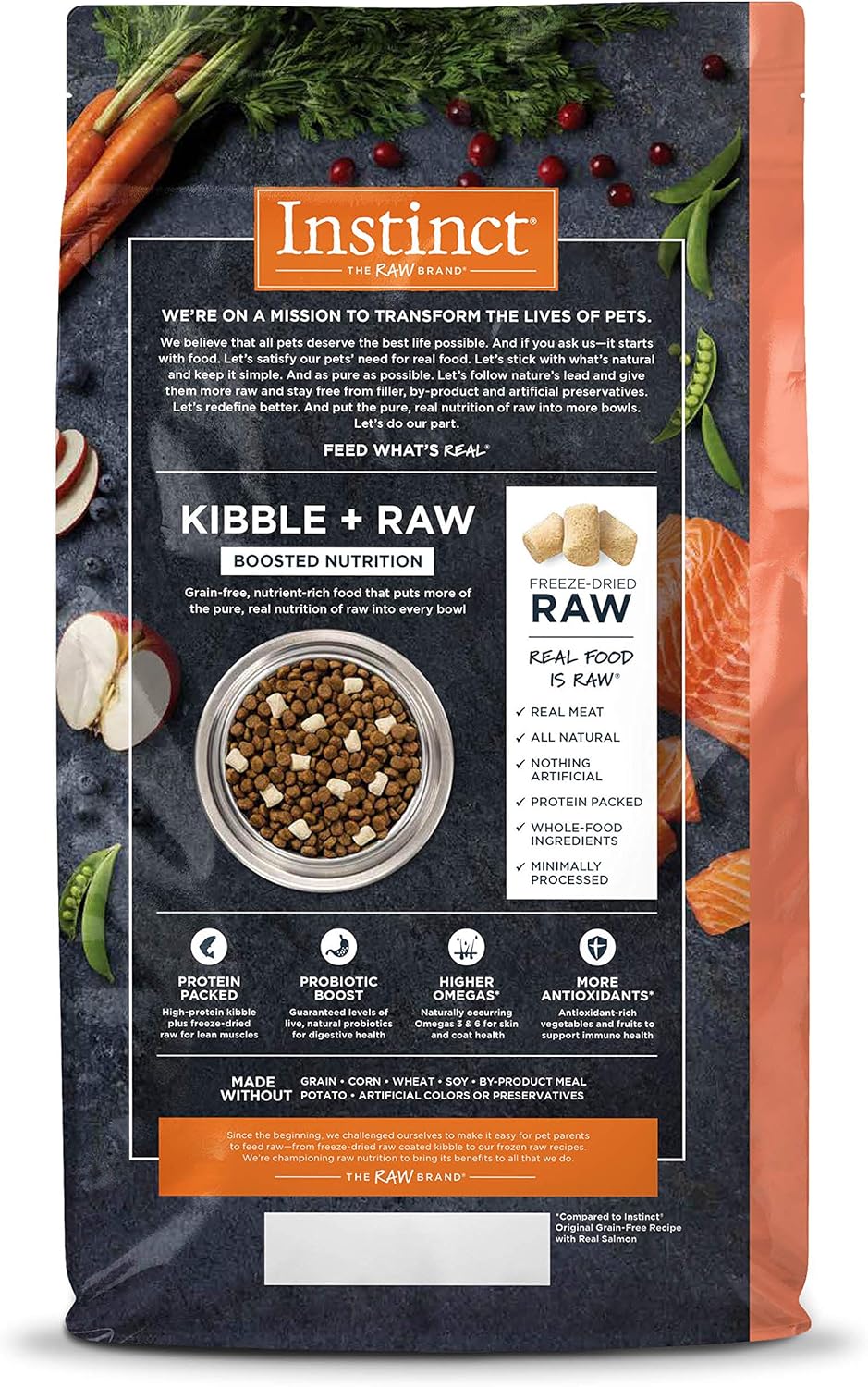 - OUR BEST DOG FOOD BOOSTED WITH RAW: We craft dry & wet dog food from real ingredients. Compare Instinct to Blue Buffalo, Rachel Ray, Hills Science Diet, Purina One, Taste of the Wild, Merrick, Natural Balance, Wellness, Orijen, Royal Canin, Iams & Nutro.