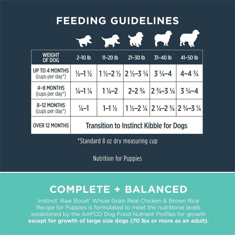 - WHOLE GRAIN PUPPY FOOD WITH FREEZE DRIED RAW CAGE FREE CHICKEN: Instinct Raw Boost dry dog food combines high protein, whole grain kibble with all natural bites of freeze dried raw chicken. Cage free chicken is the #1 ingredient - for energy to grow & play