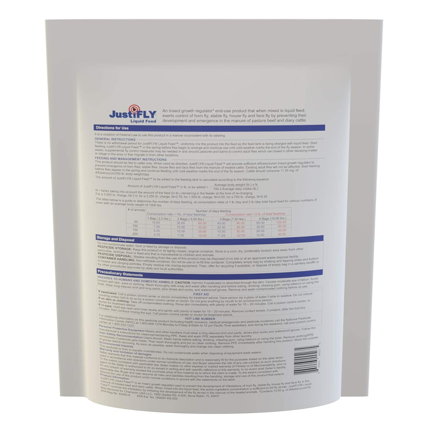 Keep your herd protected from flies all season long with the JustiFLY® Liquid Feed 5 lb Add Pack. This easy-to-use insect growth regulator (IGR) larvicide is designed to break the life cycle of all four major fly species that affect cattle: horn flies, face flies, stable flies, and house flies.