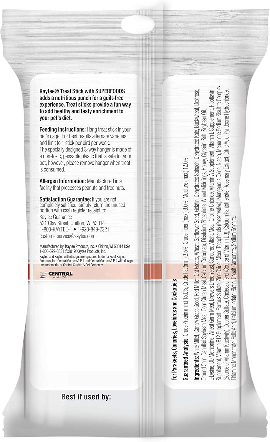 Kaytee Treat Stick with SUPERFOODS adds a nutritious punch for a guilt free experience. Treat sticks provide...