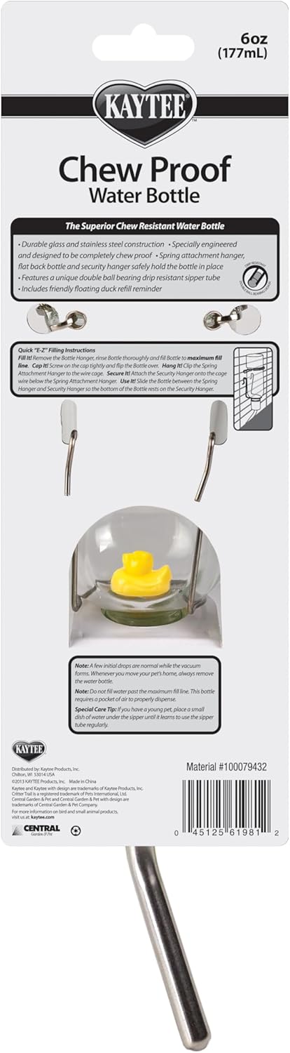 Kaytee Chew-Proof Water Bottle for Pet Hamsters, Gerbils and Rats, 6 oz