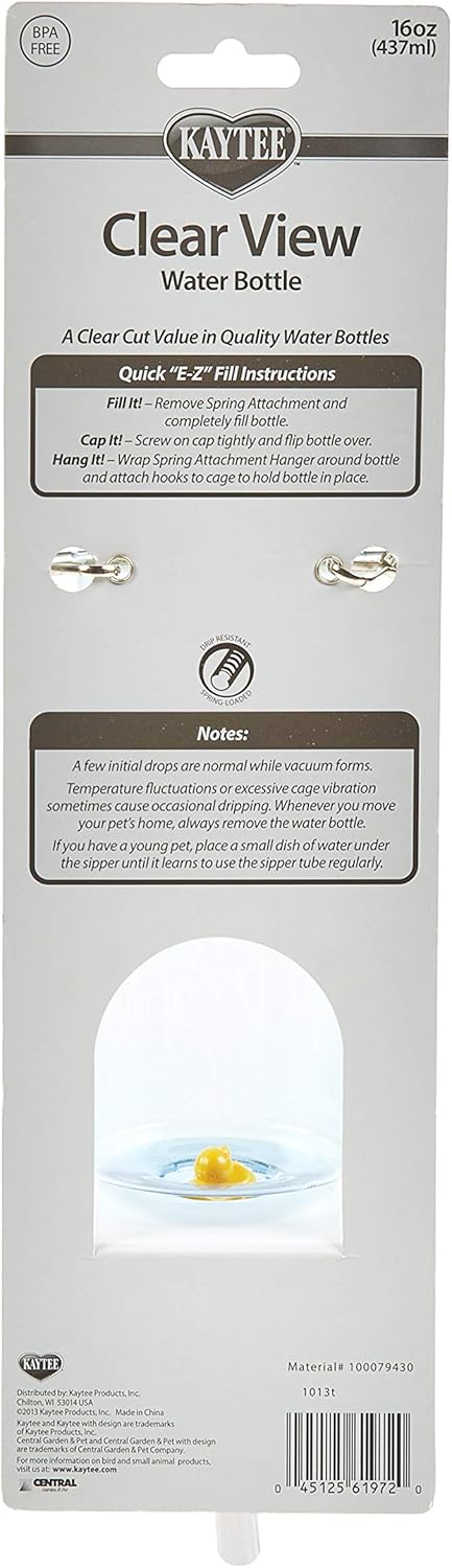The clear choice water bottle. Heavy duty spring attachment hanger secures bottle to any small animal wire home. Drip resistant sipper tube. Comes with a floating duck to remind owner to refill the bottle.