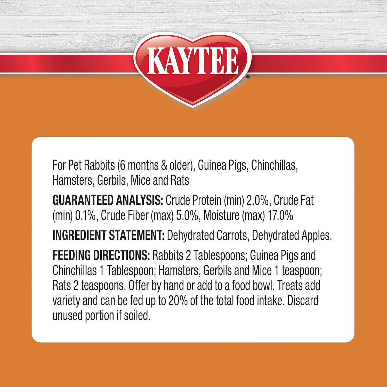 Kaytee Natural Snack With Superfoods Carrot & Apple adds a nutritious and flavorful boost to your pet’s diet. Made with wholesome, natural ingredients, Kaytee Natural Snack With Superfoods are a fun way to add healthy and tasty enrichment to your small pet’s diet. This guilt-free snack contains no fillers, artificial preservatives, or colors. Serve as a stand-alone treat or as a topper to your pet’s favorite pellet or hay. Ideal for guinea pigs, adult pet rabbits, hamsters, and other small animals.
