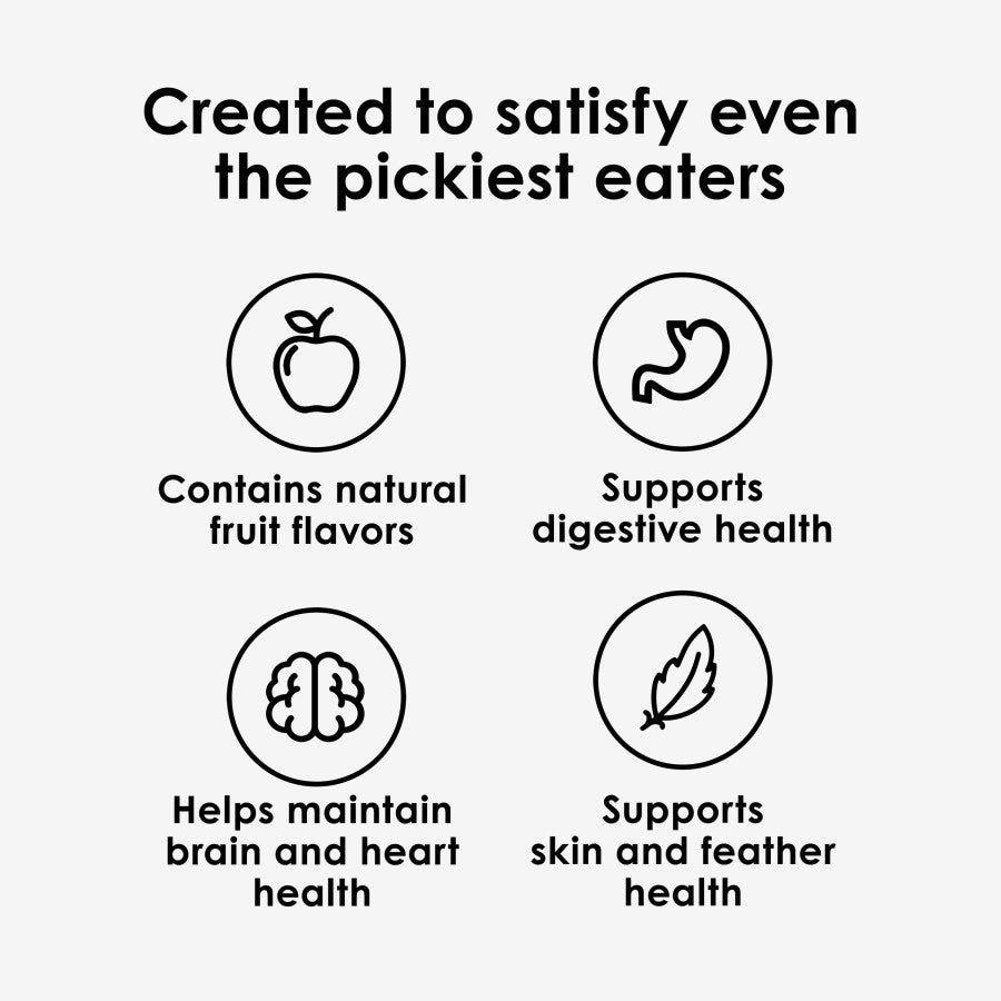 We believe all birds should get the care they deserve. Our products are made with only the best ingredients and nutrients. Kaytee Nutrisoft pet bird food pairs a unique, soft texture with natural fruit flavors, providing optimal nutrition. These pellets are great for picky eaters like Parakeets and Cockatiels and contain the important nutrients your pet bird needs to support digestive, brain, heart, skin and feather health. There’s a little peace of mind in every piece of soft, delicious, nutritious, Kaytee Nutrisoft pellet.