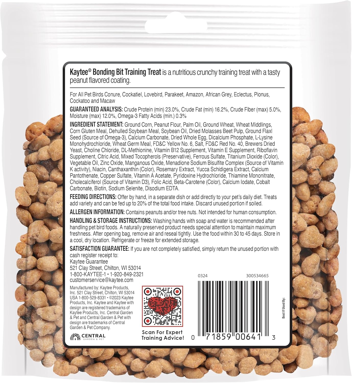 Delicious, nutritious, right-sized training treats that support productive training and bonding with your pet bird. Small, crunchy pieces wrapped in an irresistible peanut flavored coating contain natural beta carotene, antioxidants, and healthy fats to create a tasty treat, perfect for bonding and training.