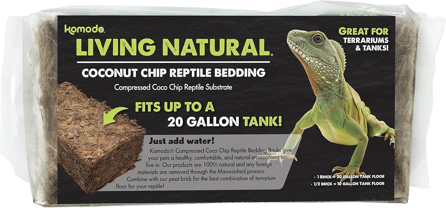 Komodo Coconut Coir Chip Brick | 100% Natural Coconut Coir Reptile Terrarium Habitat Bedding | Retains Moisture for Regulating Humidity | Fits up to a 20 Gallon Tank