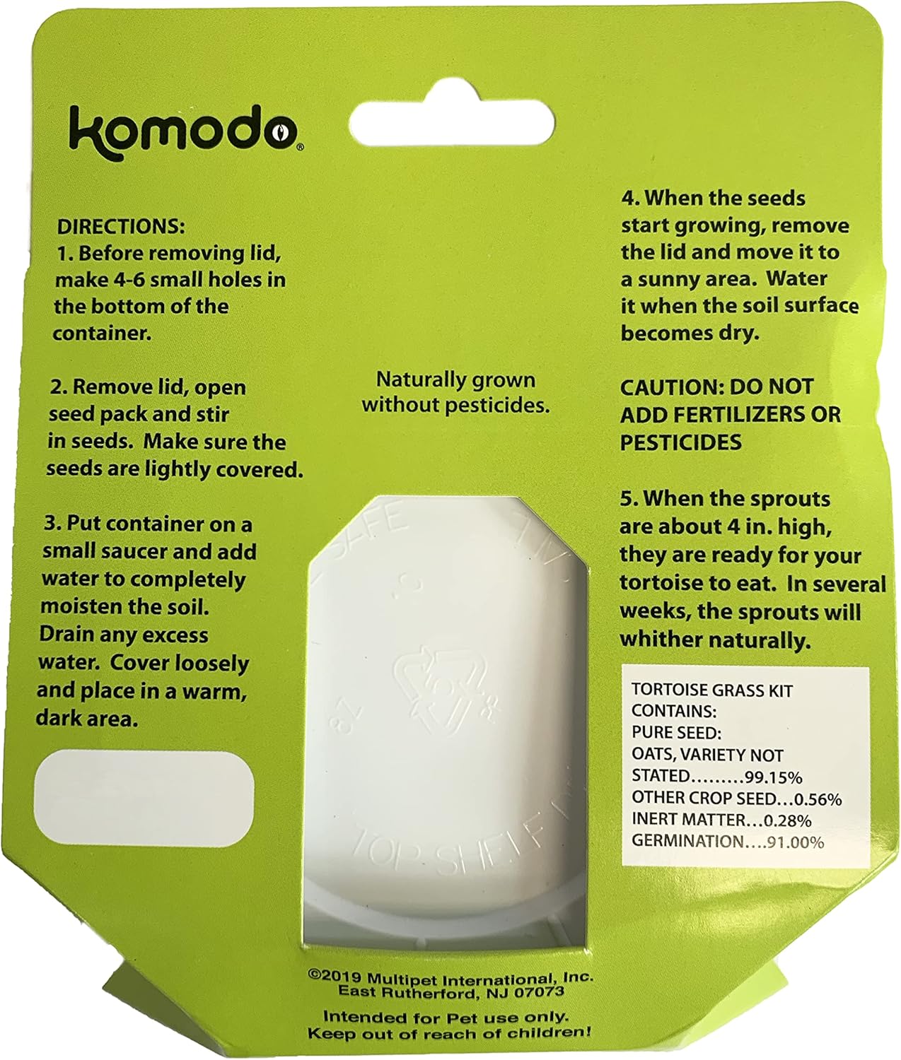 Komodo Grow Your Own Tortoise Grass Seed Kit | Grows Year Round | Fresh Addition for Tortoises Diet