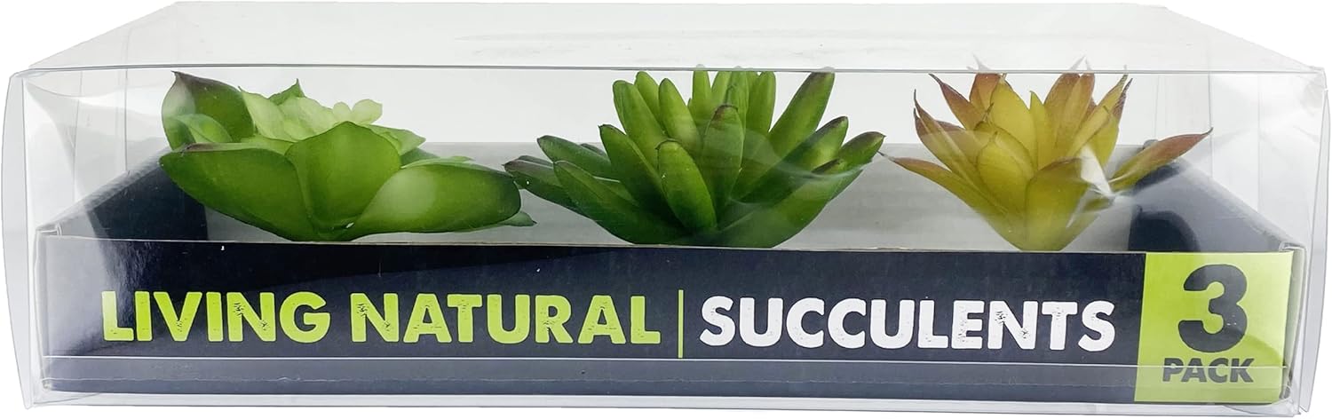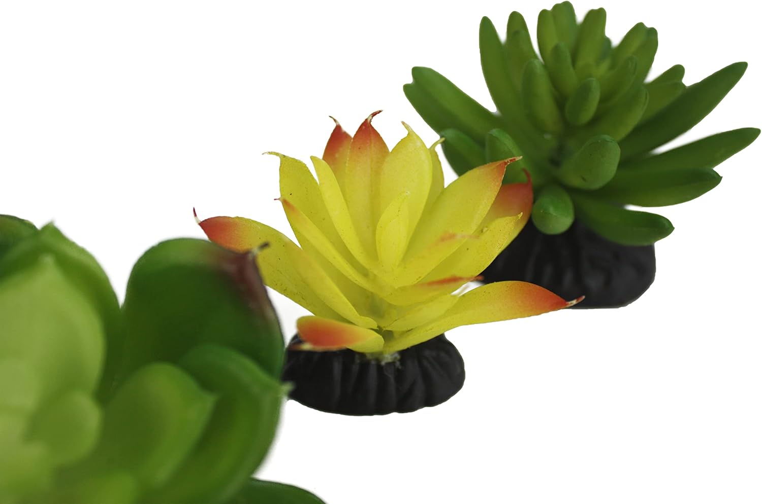 Komodo Reptile Terrarium Succulent 3PK Yellow/Green Plants | Natural Looking Artificial Aquarium Ornament & Habitat Decoration Accessory with Weighted Base