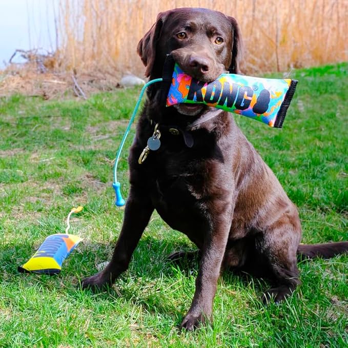 KONG Bunji High-Viz Brightly Colored Bumper - Heavy Duty Firehouse Material Dog Toy