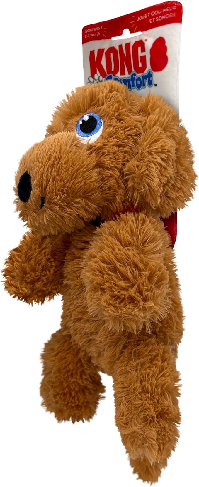 KONG Comfort Pups Low Stuffing Plush Fur and Crinkly Noise with Squeaker (Goldie)