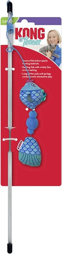 Rattling, dangling fish with Crinkly fin Bouncing action Sparks natural hunting instincts Long glitter pole and elastic...