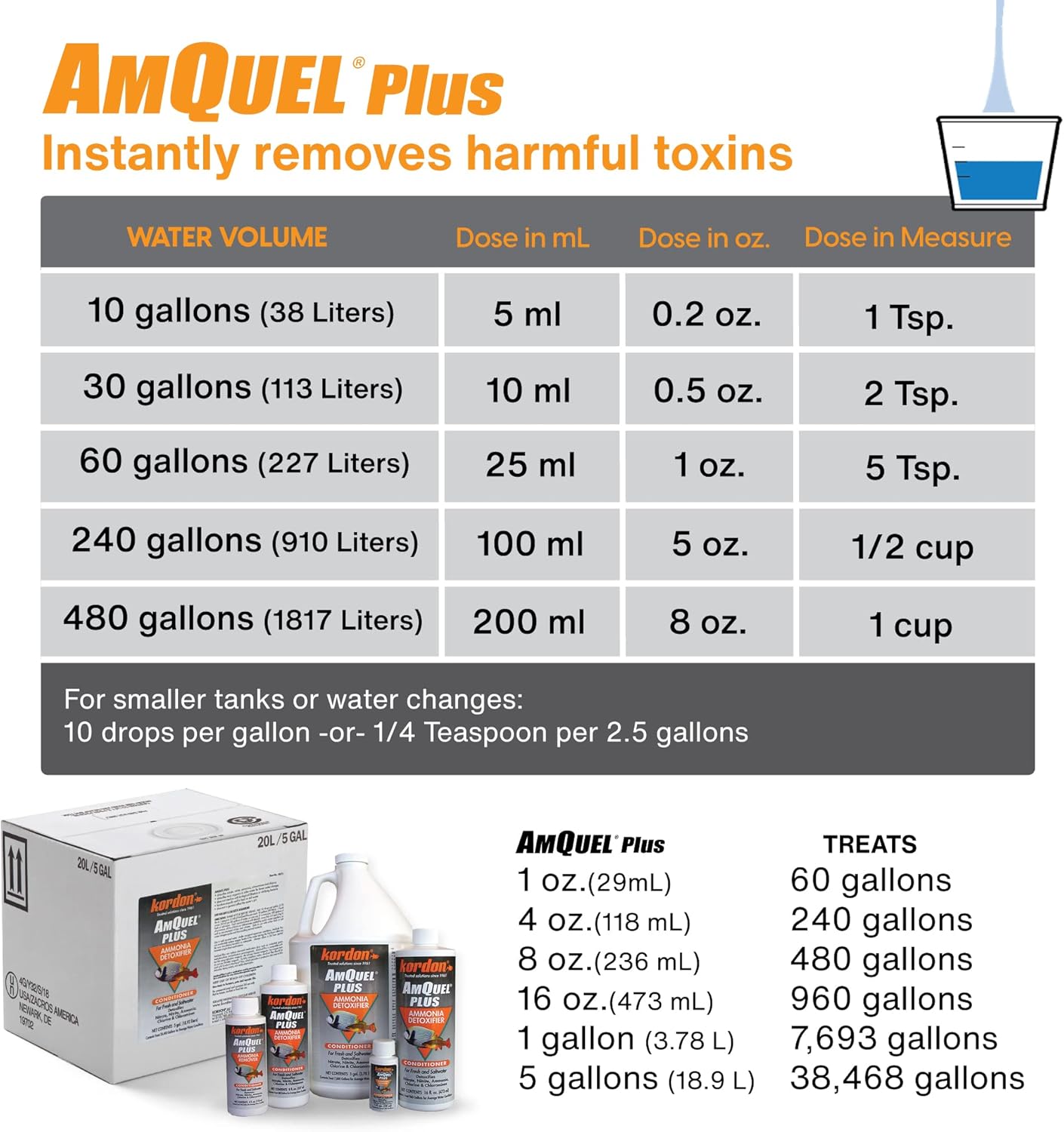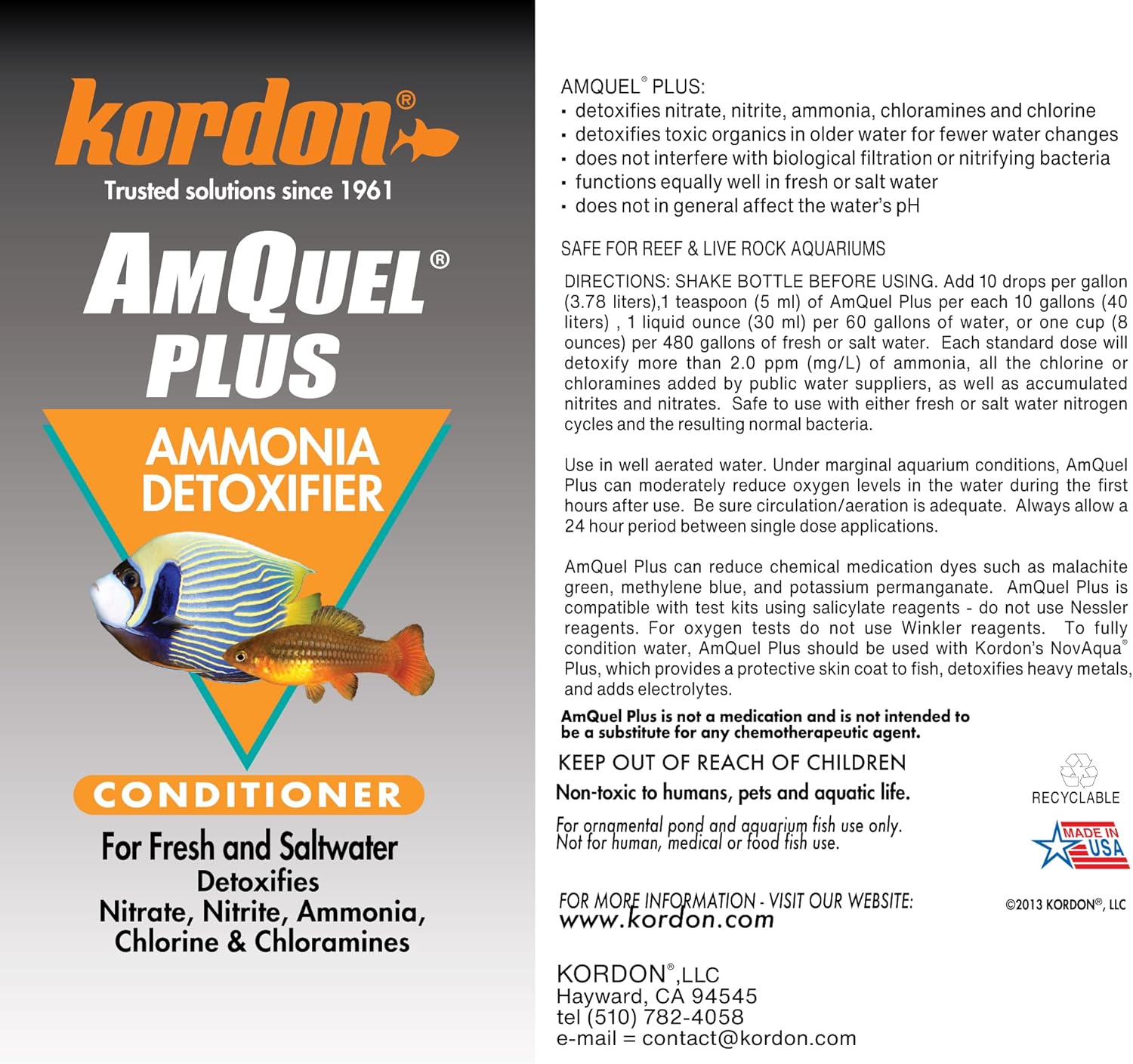 Kordon AmQuel Plus Aquarium Water Conditioner - Instantly Detoxifies Ammonia, Nitrite, Nitrate, and Chlorine Remover for Freshwater & Saltwater Aquariums, 16 Ounces