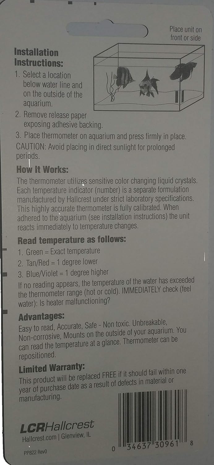 | Model Name | LCR Hallcrest 43330961: Liquid Crystal Aquarium Thermometer Vertical, Mini |