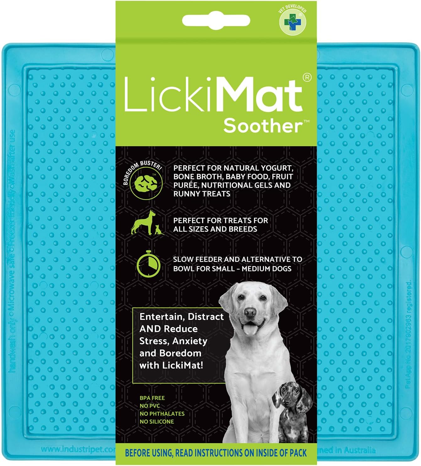 LickiMat Classic Soother Slow Feeder for Dogs Lick Mat Boredom Anxiety Reducer Perfect for Food Treats Yogurt Liquid Food Peanut Butter Fun Alternative to a Slow Feed Dog Bowl, Turquoise