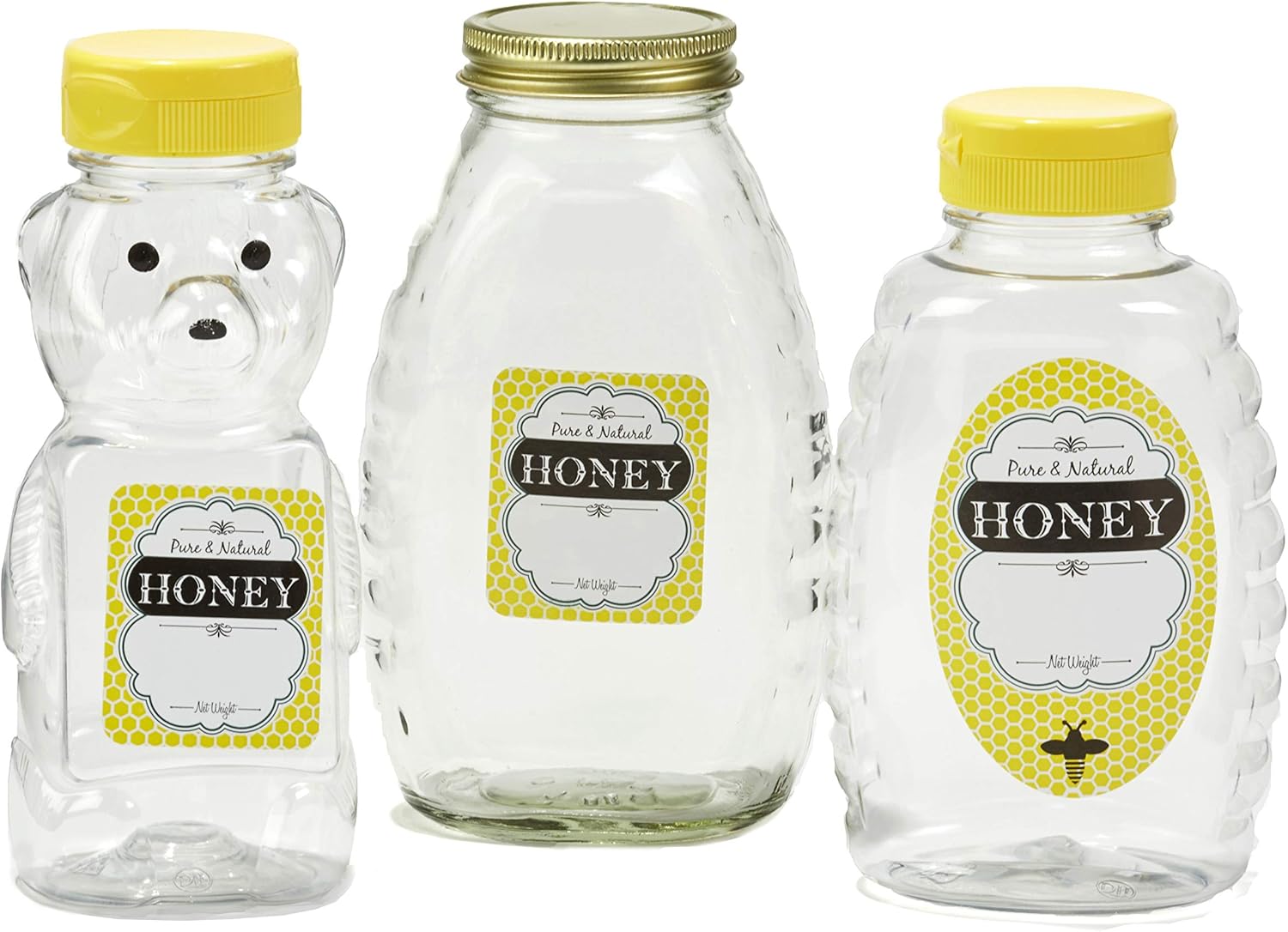 Attractive Design: Yellow honeycomb pattern with a bee and “Pure & Natural Honey” text.