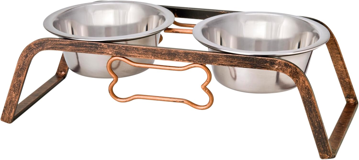 Loving Pets Black Label Collection Rustic Bone Diner for Dogs, 1-Pint, Aged Copper