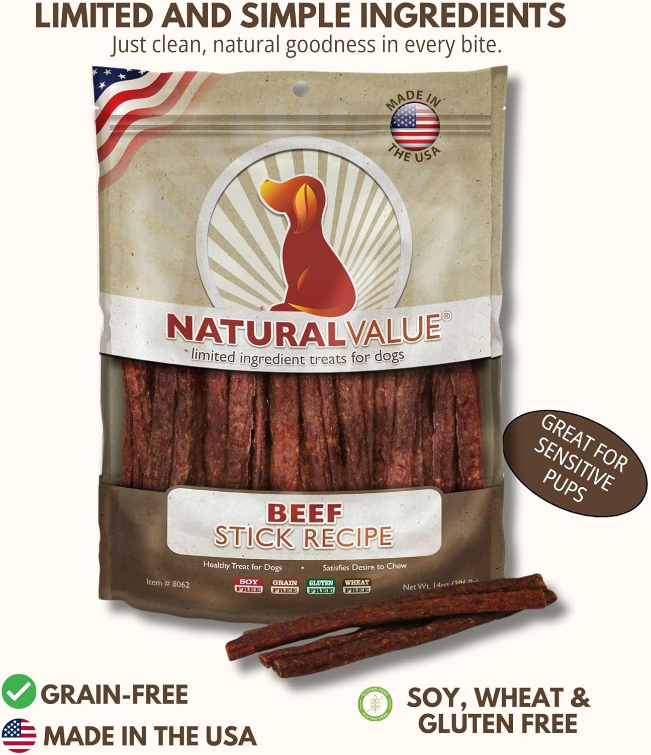 Loving Pets Natural Value Beef Sticks - Soft Jerky Dog Treats for Large & Small Breeds - Healthy Gluten, Wheat, Soy & Grain Free Pet Treats for Dogs