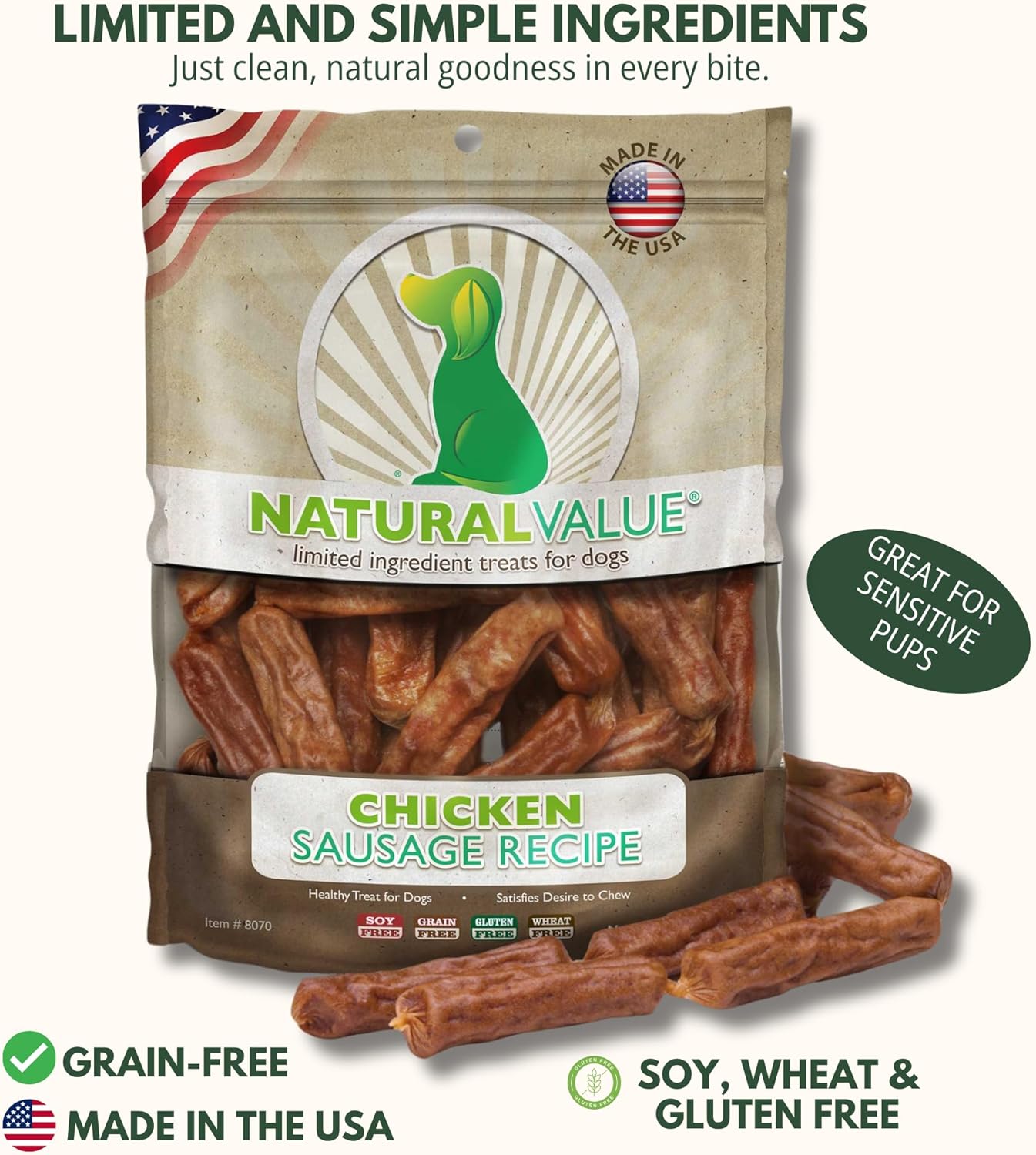 Loving Pets Natural Value Chicken Sausages - Soft Jerky Dog Treats for Large & Small Breeds - Healthy Gluten, Wheat, Soy & Grain Free Pet Treats for Dogs