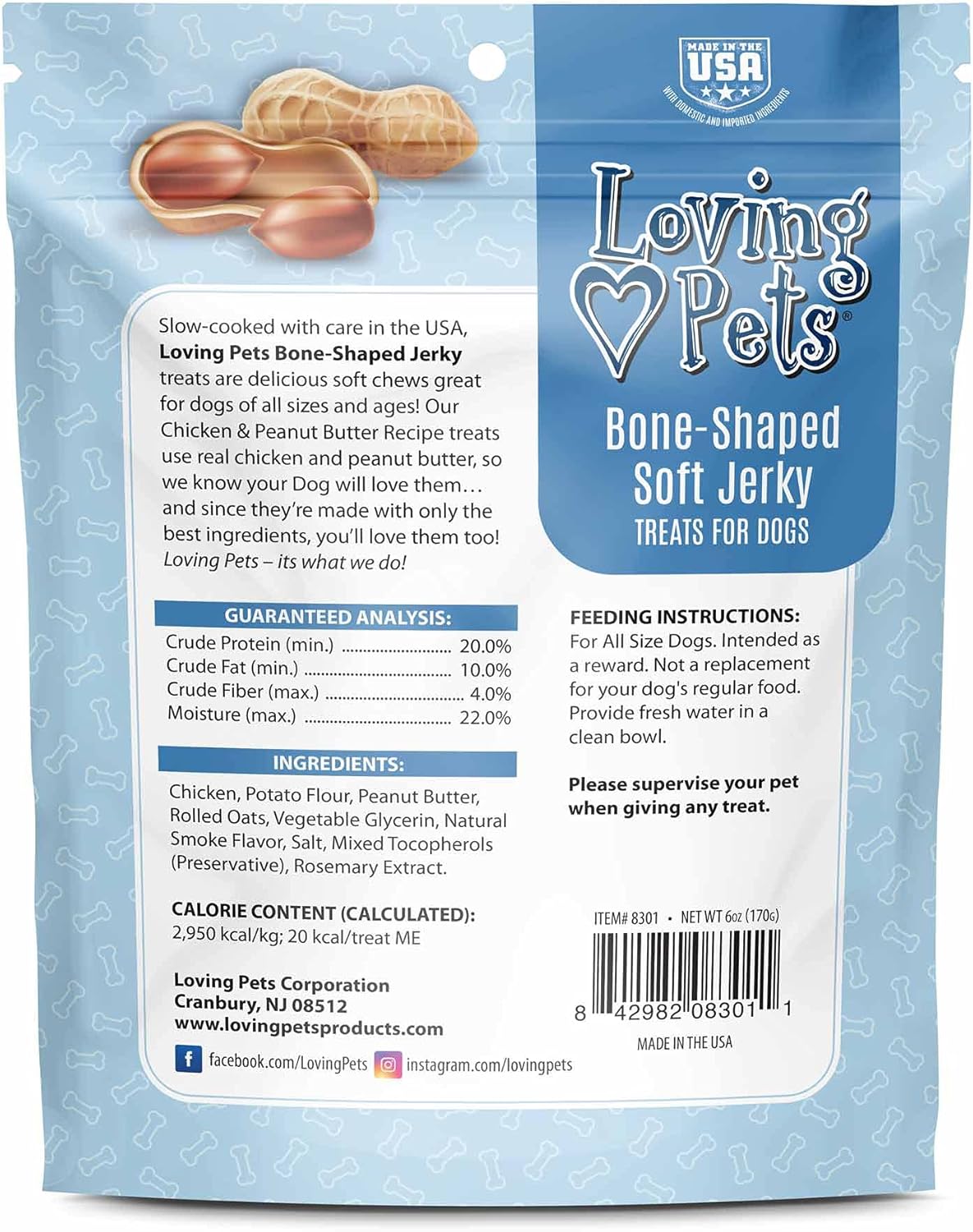 Loving Pets - Soft Chew Jerky (Bone-Shaped, Chicken & Peanut Butter Recipe) USA Made Dog Treats