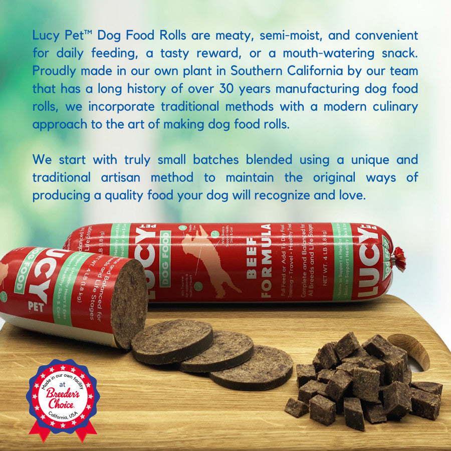 Lucy Pet Dog Food Rolls are meaty, semi-moist and convenient. This premium dog food roll can be...