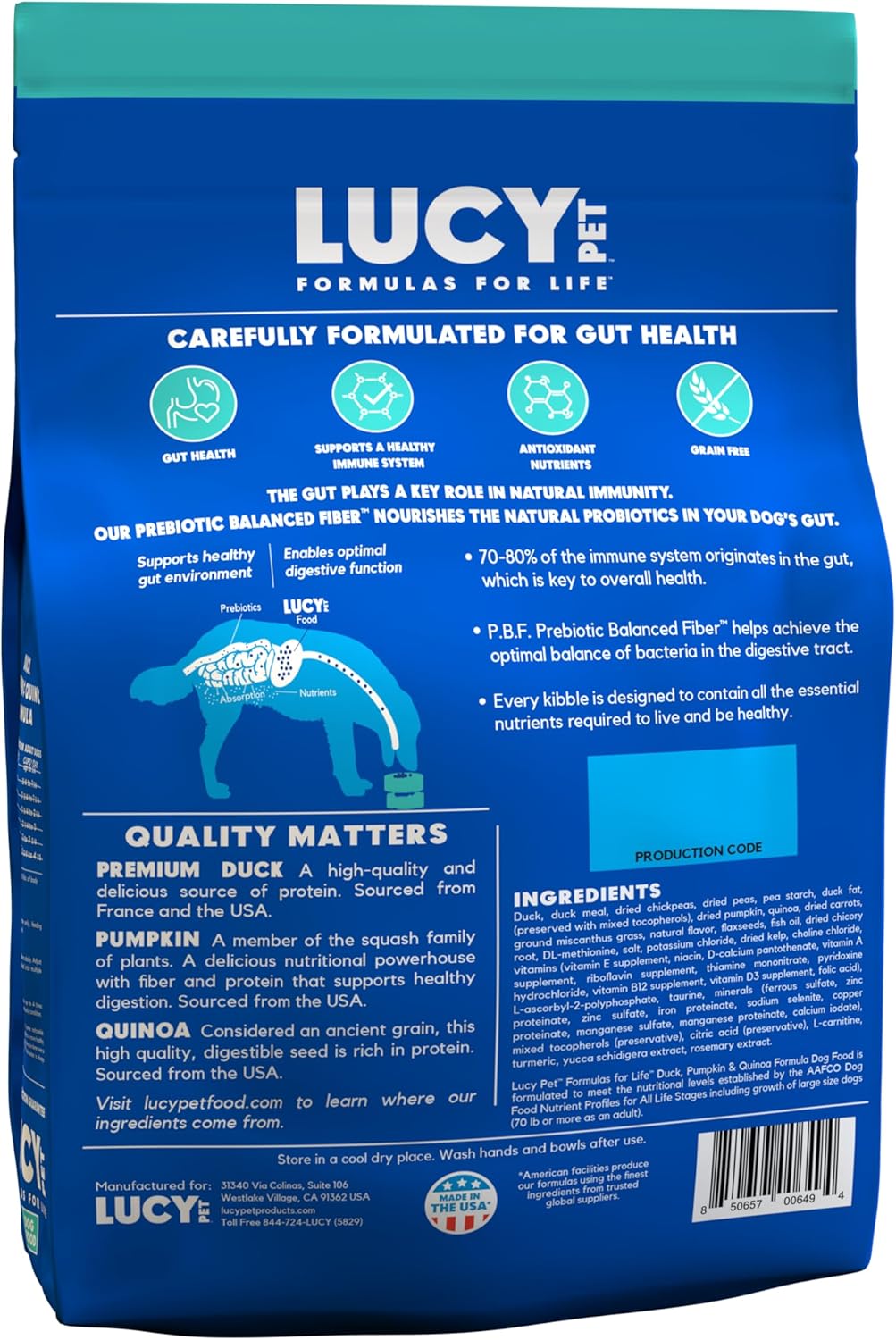 Lucy Pet Products Formulas for Life Duck, Pumpkin & Quinoa Dry Dog Food, All Life Stages, Digestive Health, Sensitive Stomach and Skin