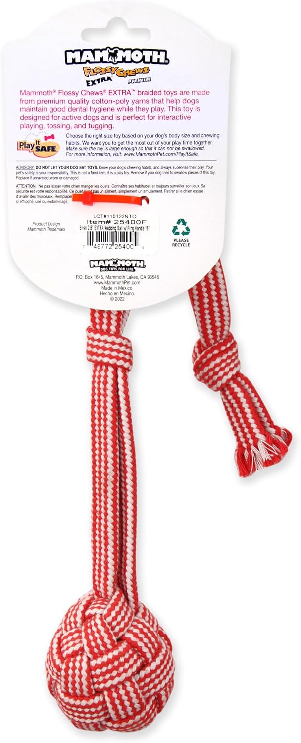 Mammoth Pet Products Extra Flossy Webbing Ball w/Fling Handle Dog Toy,