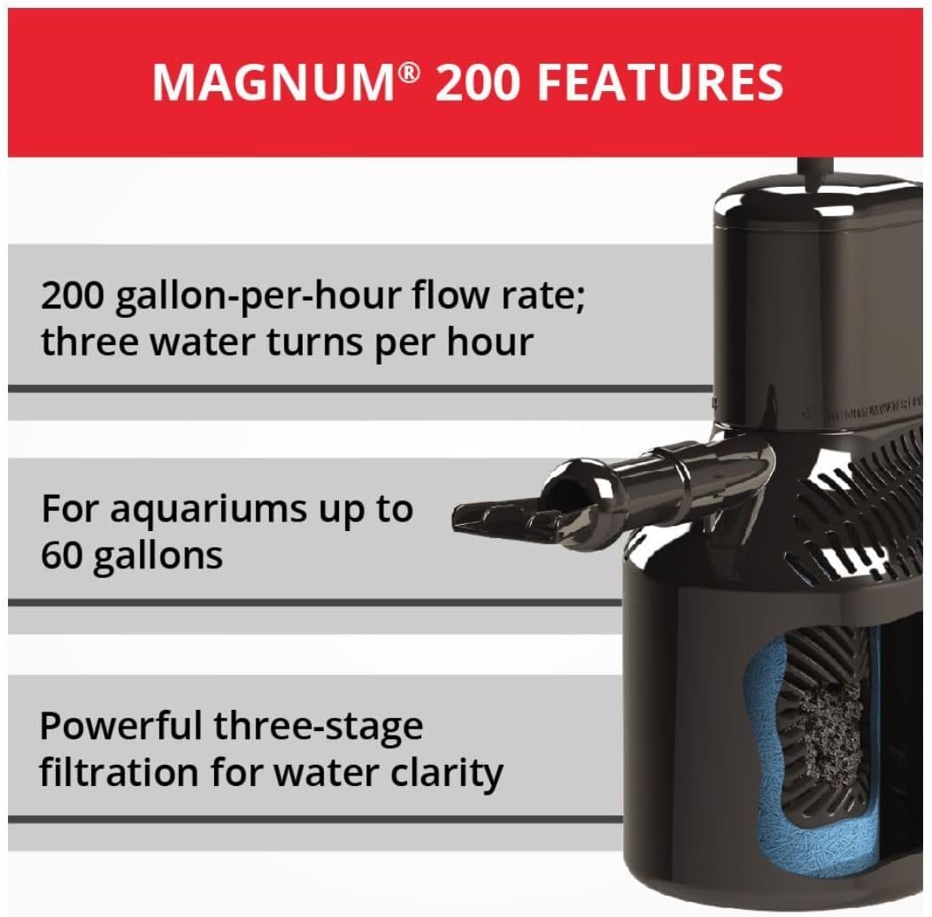 Marineland Magnum 200 Polishing Internal Canister Filter for 60 Gallons, Crystal Clean Water