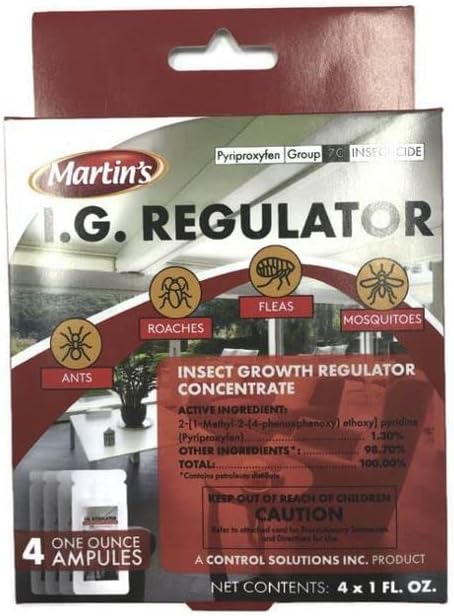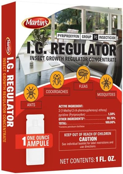 Martin’s® I.G. Regulator is a professional-grade insect growth regulator that helps prevent flea re-infestation for up to seven months. By inhibiting larvae from developing into adult fleas and horseflies, it provides long-lasting protection for your home, barn, and animal living areas.