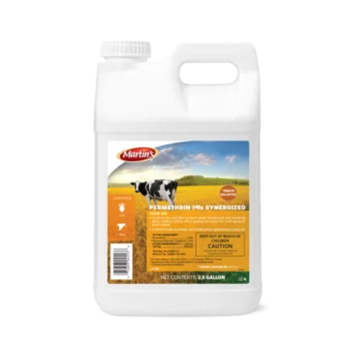 Martin's® Permethrin 1% Synergized Pour-On is a ready-to-use insecticide designed for effective control of flies, lice, keds, mosquitoes, ticks, and other common pests on livestock. Ideal for cattle, sheep, beef, and dairy animals, this pour-on solution can also be applied using a mist spray or backrubber for convenience and thorough coverage.