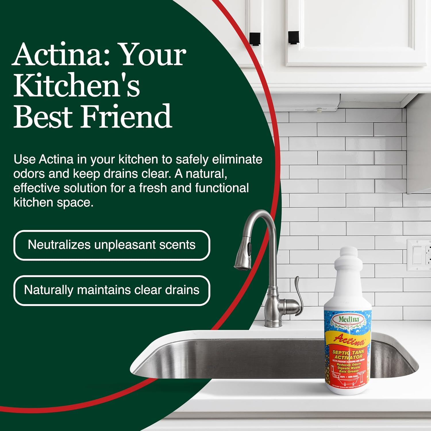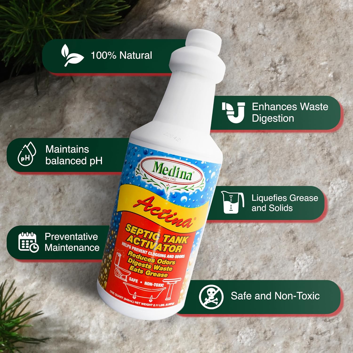 Medina® Actina® Septic Tank Activator Available Sizes: 32 oz | 128 oz Keep your septic system healthy...