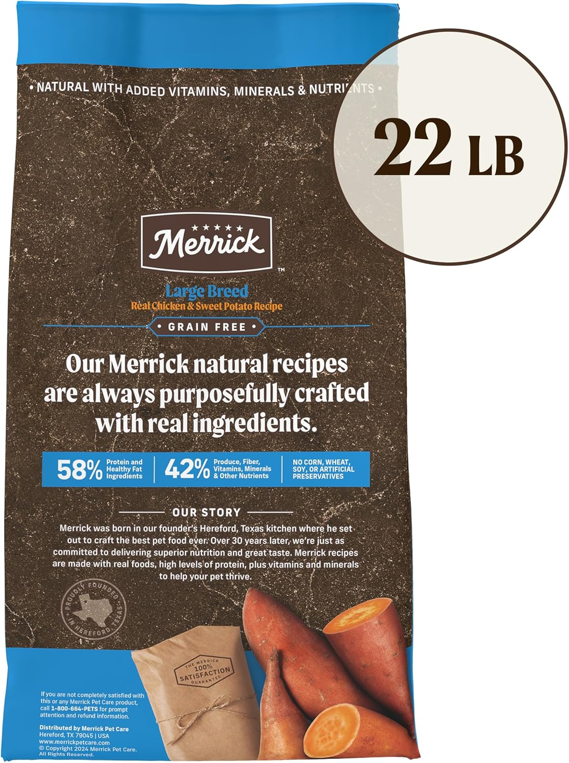 Merrick Grain Free Premium Large Breed Dry Dog Food, Wholesome and Natural Kibble, Chicken and Sweet Potato