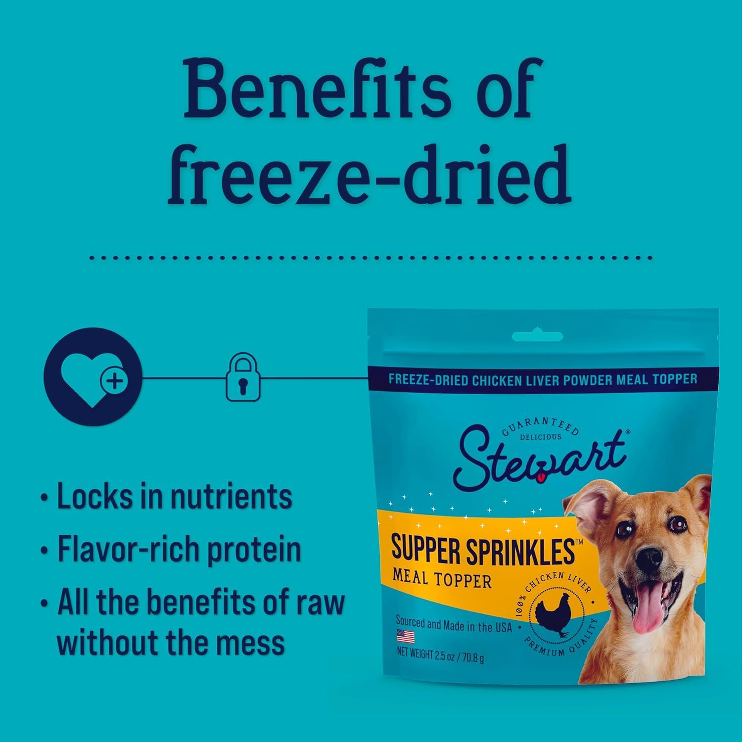 - Single Ingredient Dog Food Toppers: Made from one simple ingredient: 100% pure chicken liver; these freeze-dried Supper Sprinkles are packed with protein and vitamins A & B