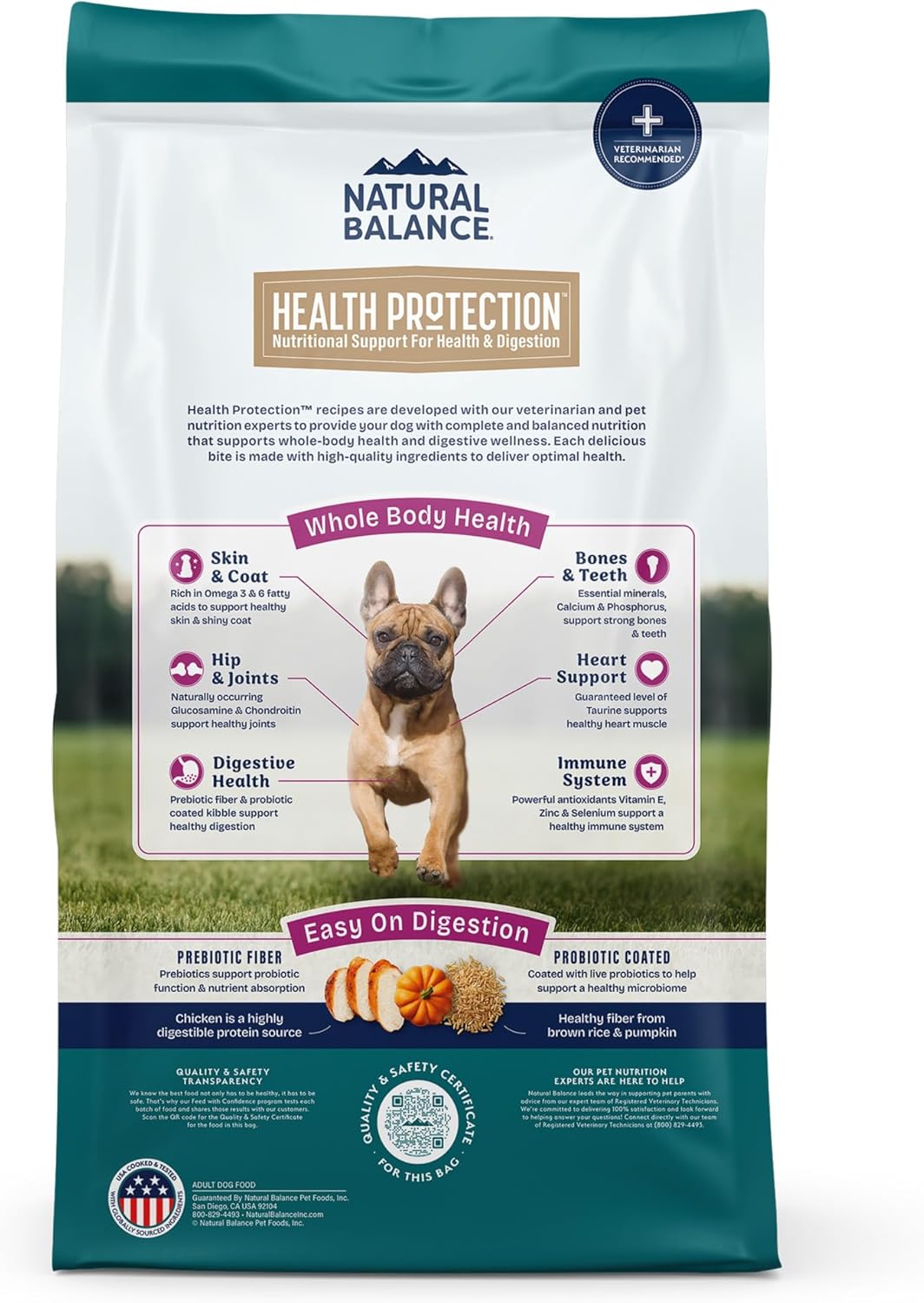 Natural Balance Health Protection Small Breed Dry Dog Food – Whole Body Health, Easy on Digestion Dog Food Made with Chicken, Brown Rice & Pumpkin for Dogs - 4lbs.
