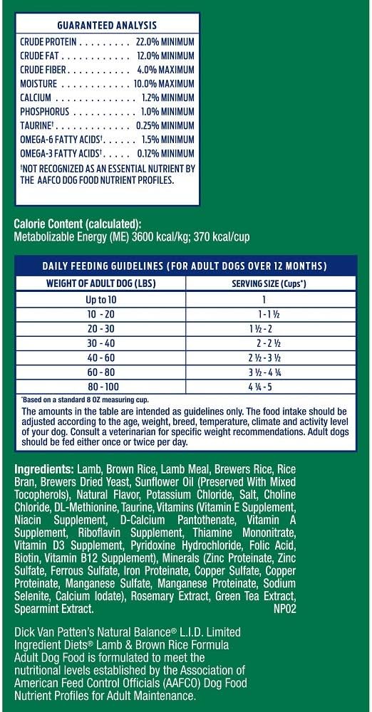 Brand Natural Balance Flavor Lamb & Brown Rice Age Range (Description) Adult Item Form Pellet Specific Uses...