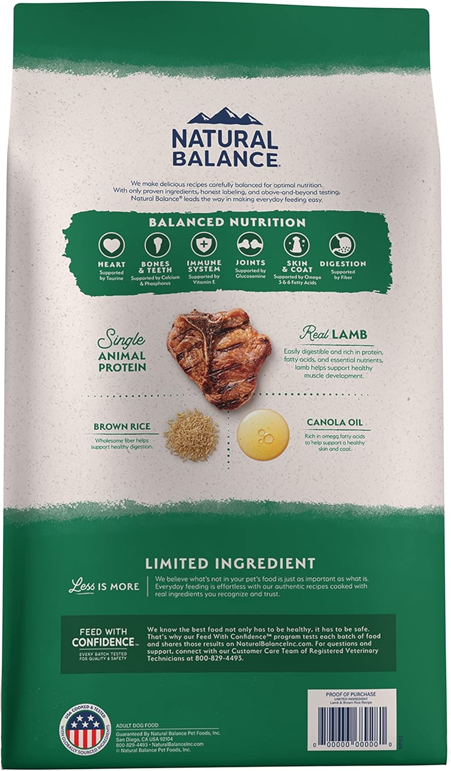 Natural Balance Limited Ingredient Adult Dry Dog Food with Healthy Grains, Lamb & Brown Rice Recipe, 12 Pound (Pack of 1)