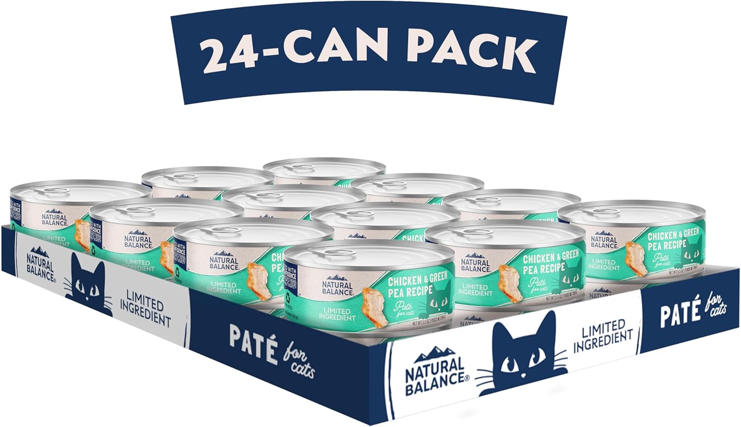 Natural Balance Limited Ingredient Diet Chicken & Green Pea | Grain-Free Wet Adult Cat Food | 5.5-oz. Can, (Pack of 24)