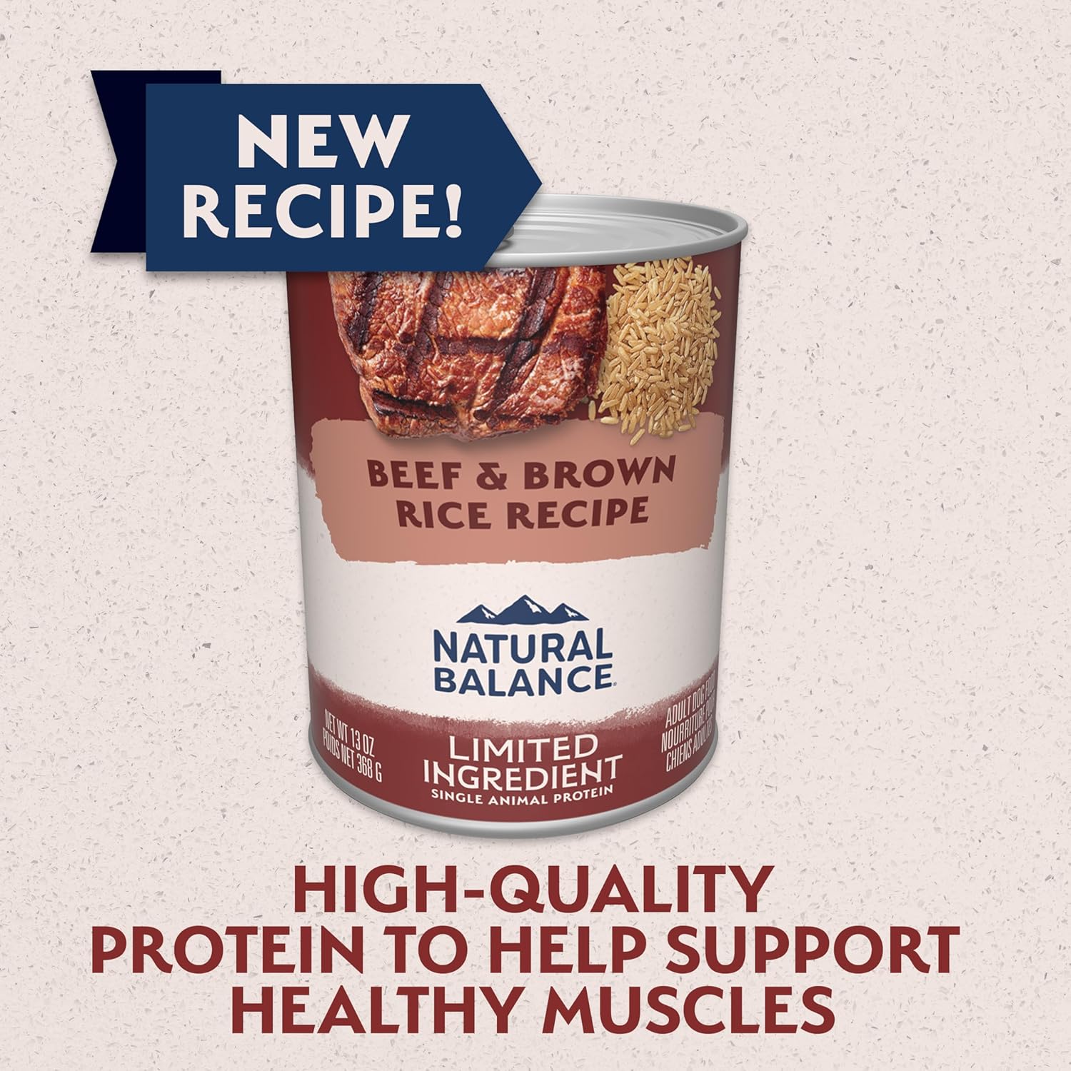 Natural Balance Limited Ingredient Adult Wet Canned Dog Food with Healthy Grains, Beef & Brown Rice Recipe, 13 Ounce (Pack of 12)