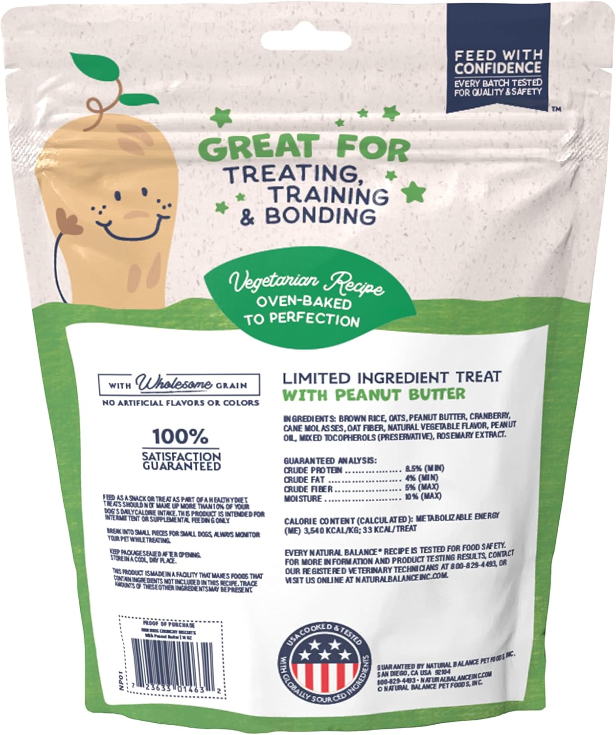 Great for treating, training & bonding! Delicious, crunchy biscuits oven-baked to perfection with peanut butter. These limited ingredient treats are the perfect companion to our kibble. Made with wholesome grains—without artificial colors or flavors. Available in 14oz resealable pouches.