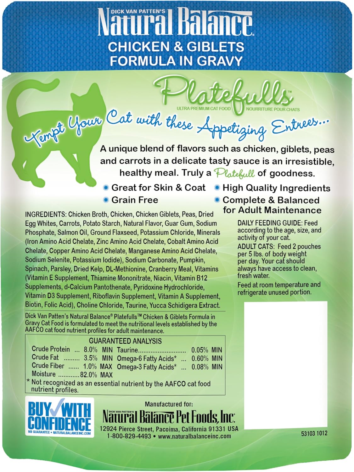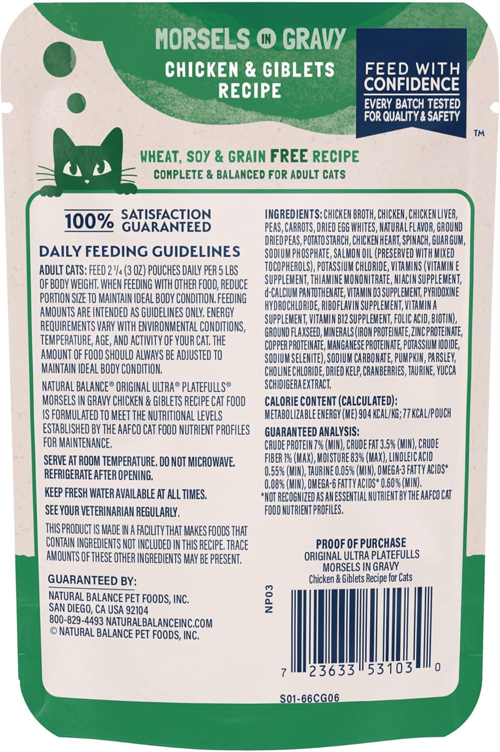 Natural Balance Original Ultra Platefulls Adult Grain Free Wet Cat Food Salmon, Chicken & Giblets Formula in Gravy, 3 Ounce Pouch (Pack of 24)