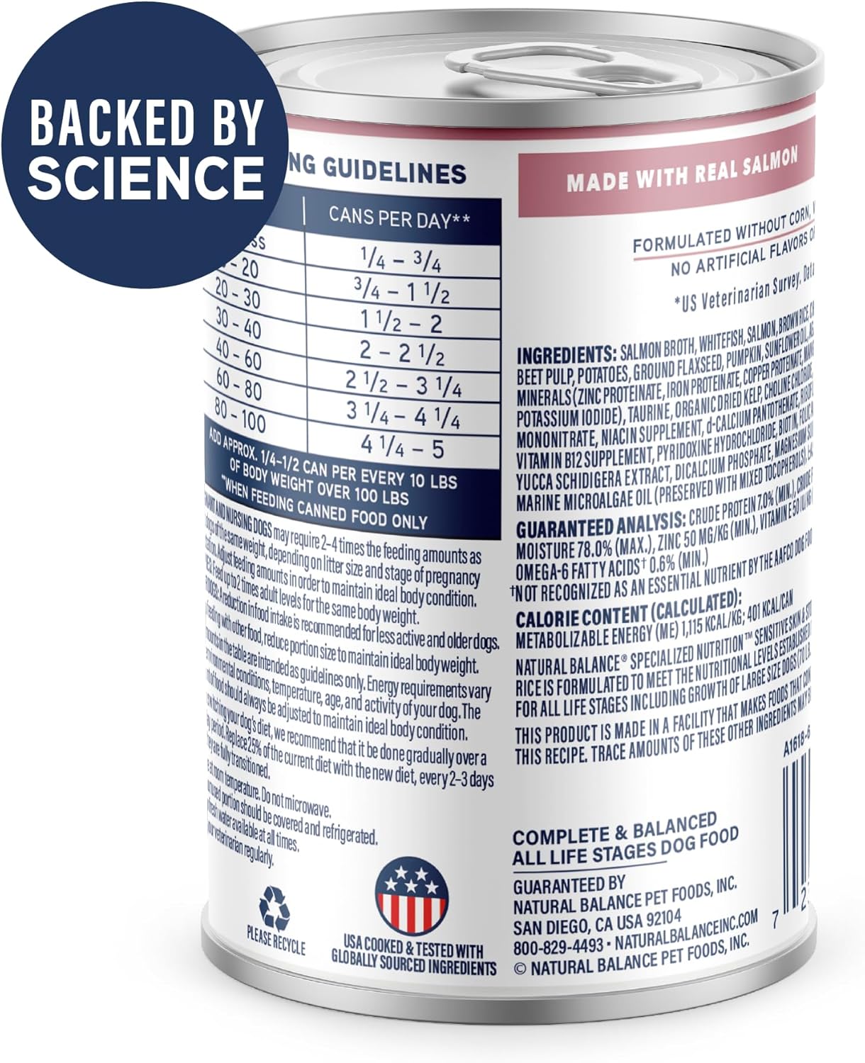 Natural Balance Specialized Nutrition Wet Dog Food, Sensitive Skin & Stomach Formula with Salmon and Brown Rice for Dogs, Natural Ingredients with Added Vitamins & Minerals - 12.7 oz. (Case of 12)