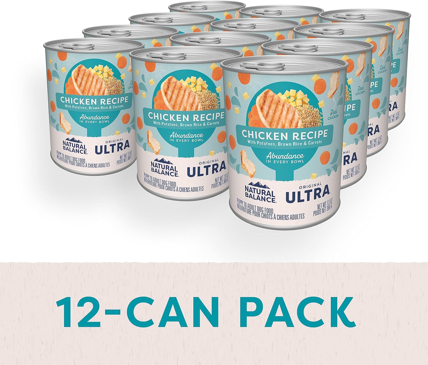 Natural Balance Original Ultra Adult Wet Dog Food, Chicken Formula with Brown Rice, Carrots & Potatoes, 13 Ounce Can (Pack of 12)