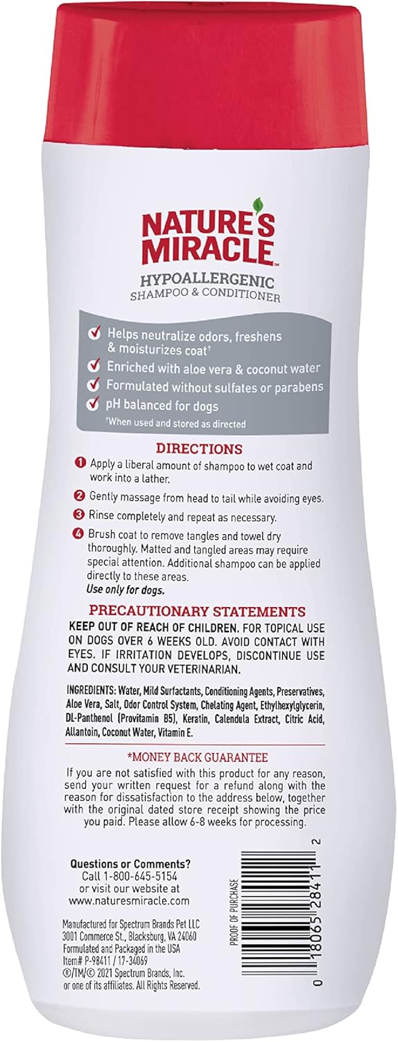 Nature’s Miracle Hypoallergenic Shampoo & Conditioner for Dogs, 16 Oz, Unscented