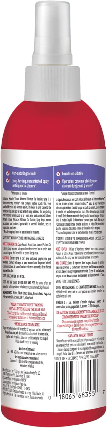 Nature's Miracle Cat Calming Spray, 8 Ounces, Stress-Reducing Formula for Cats