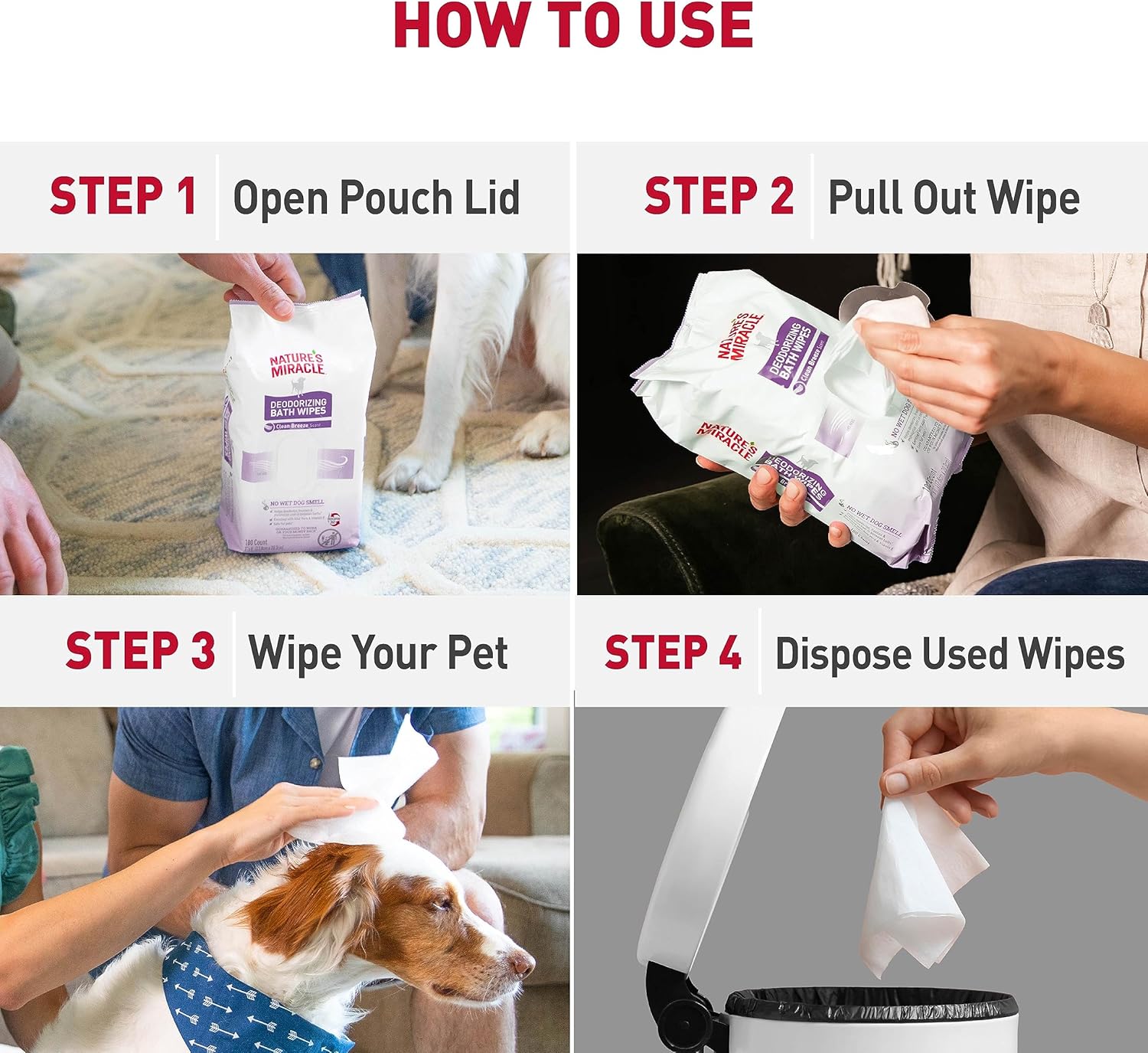 Nature's Miracle Deodorizing Bath Wipes for Dogs, 100 Count, Lavender Scent