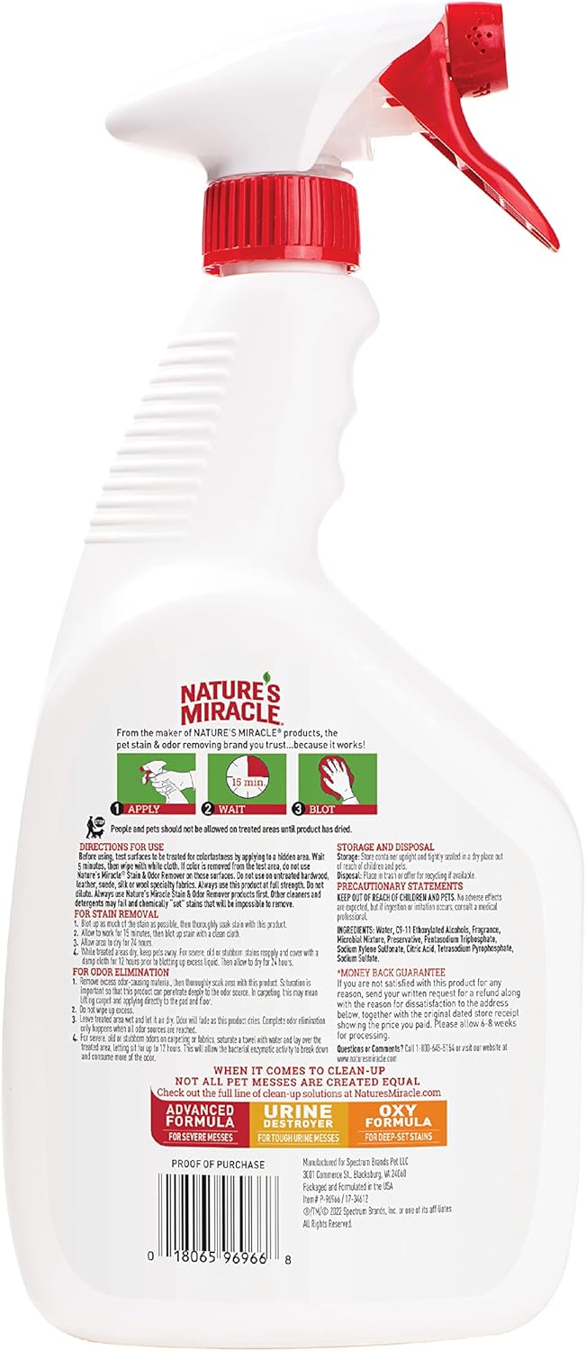 Nature's Miracle Dog Stain and Odor Remover, Everyday Mess Enzymatic Formula, Melon Burst Scent, 32 oz