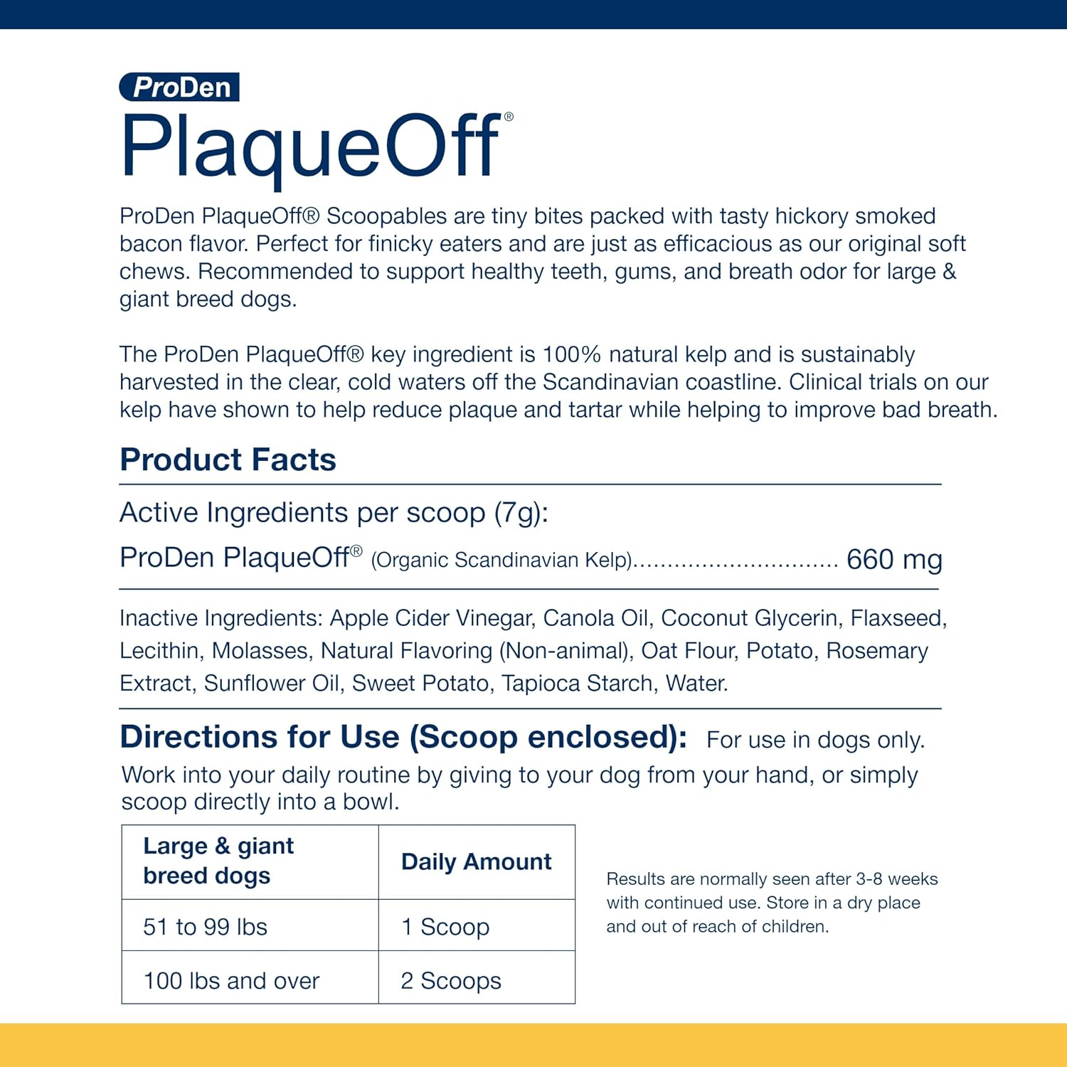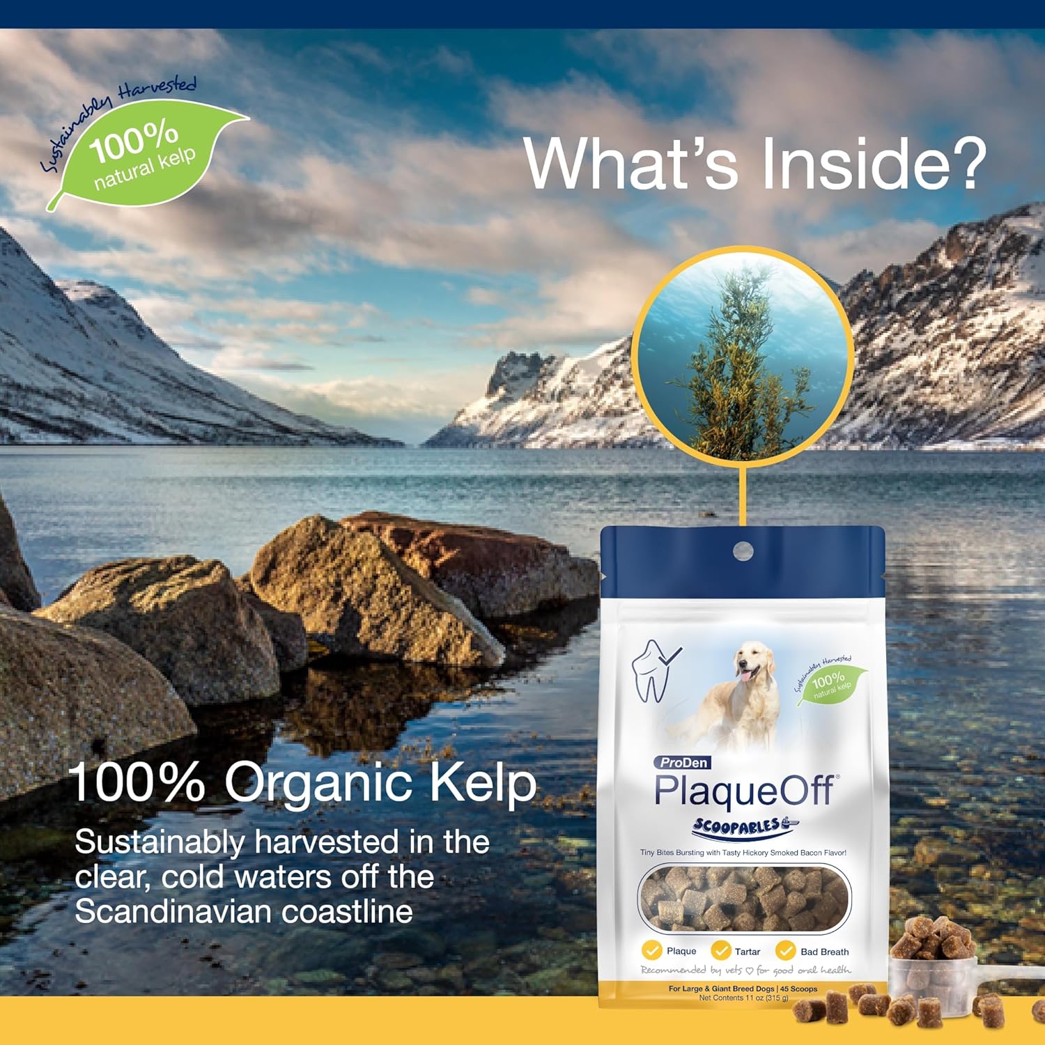 NaturVatProDen PlaqueOff Scoopables - Hickory Smoked Bacon Flavor Dental Bites for Large Dogs, Natural Kelp for Plaque & Tartar Control, Freshens Breath -Large & Giant Breed Dental Care