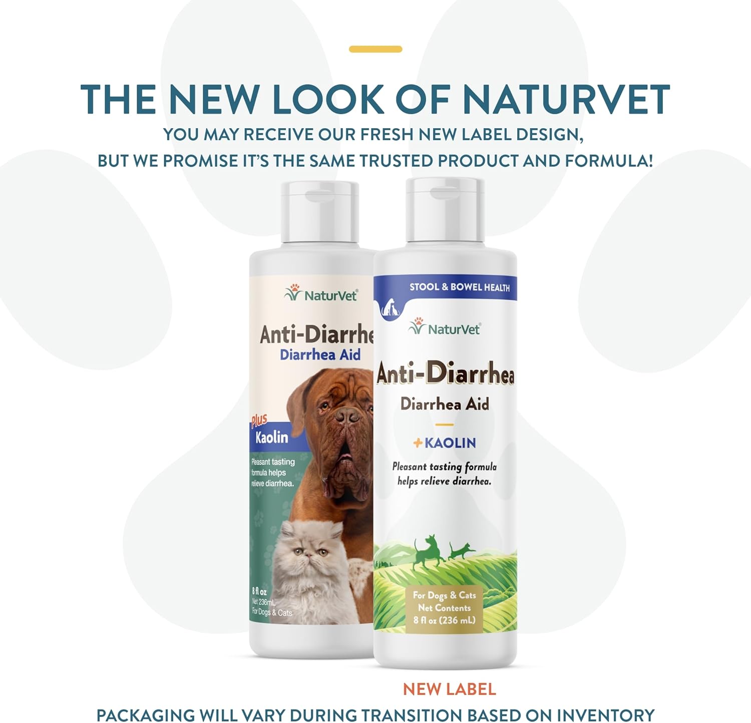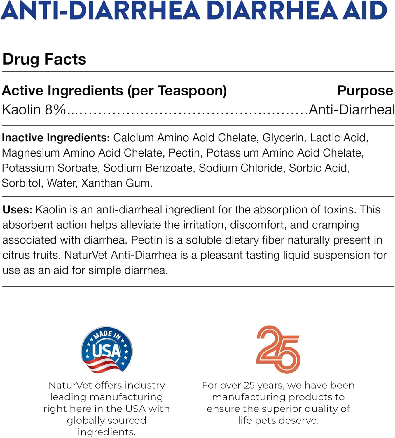 NaturVet Anti-Diarrhea Liquid Pet Supplement Plus Kaolin – Helps Alleviate Discomfort, Cramping, Irritation from Diarrhea for Dogs, Cats – Great Taste – 8 Oz.