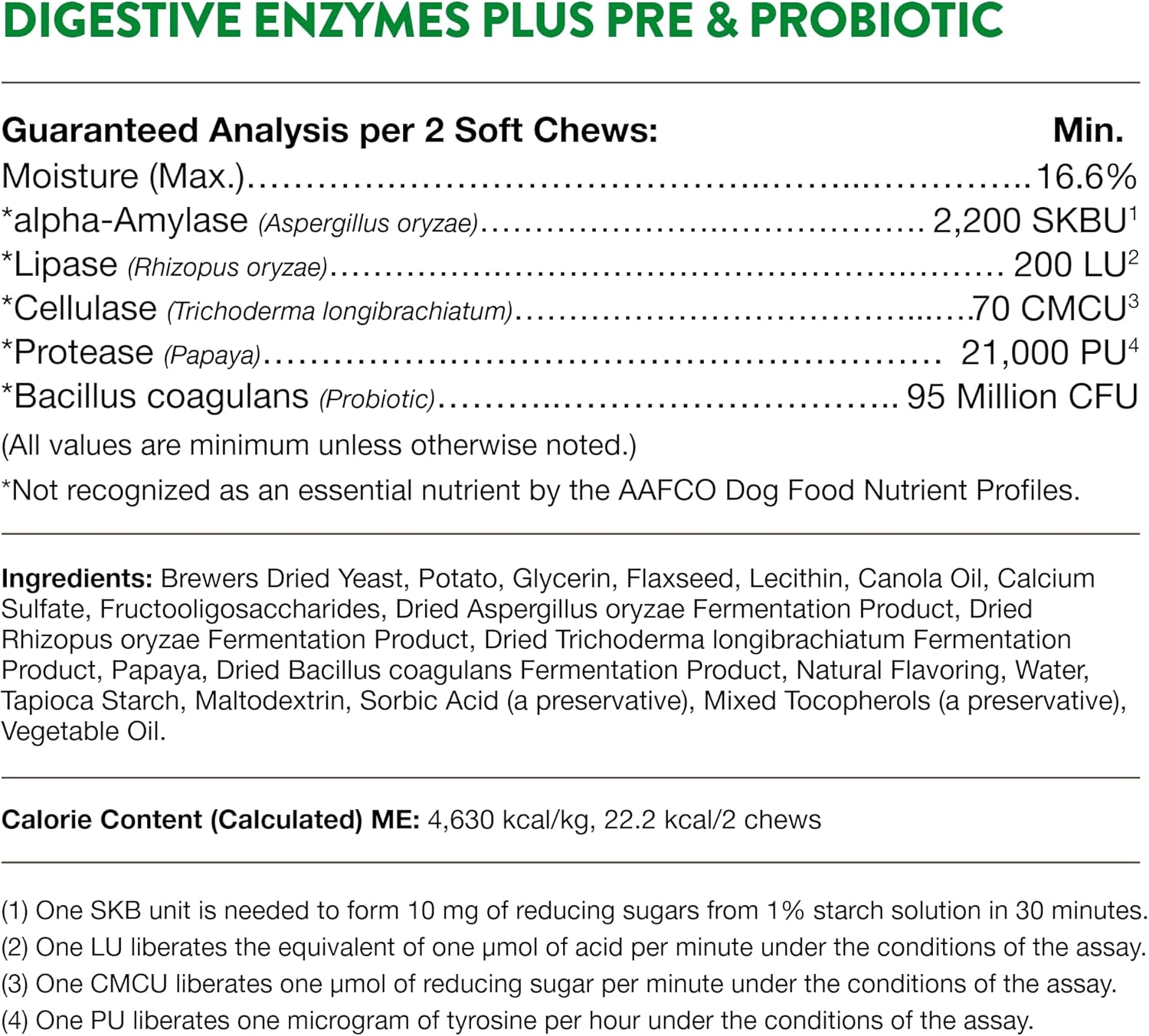 NaturVet – Digestive Enzymes - Plus Probiotics & Prebiotics – Helps Support Diet Change & A Healthy Digestive Tract – for Dogs & Cats (Soft Chews, 70 Count)