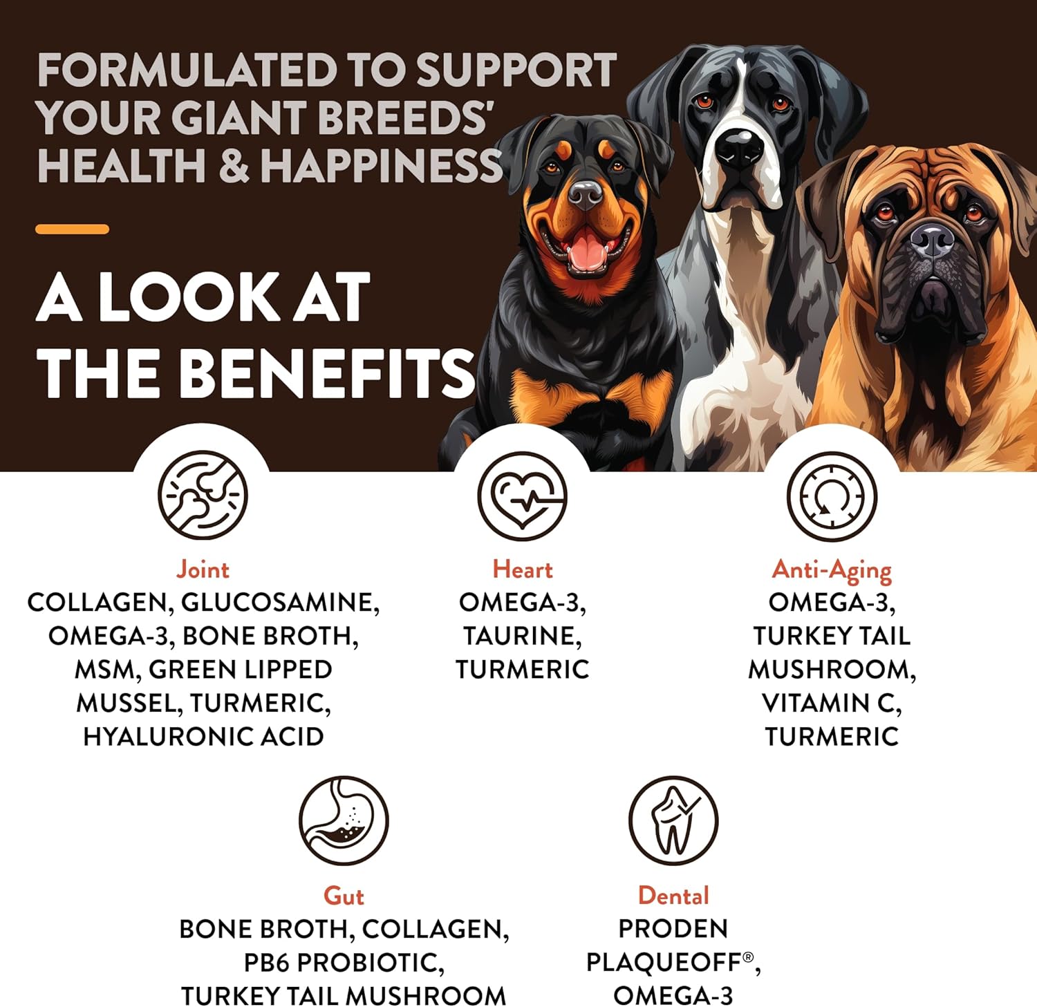 NaturVet Giant Breeds Supplement- for Joint Support, Digestion, Skin, Coat Care- Dog Multivitamins with Minerals, Omega-3, PlaqueOff- Wheat-Free Vitamins for Dogs- Giant Breeds- 50 Soft Chews