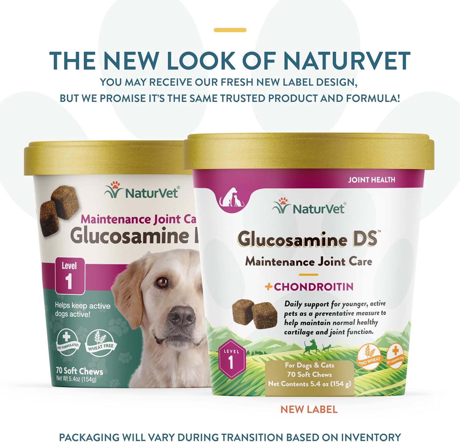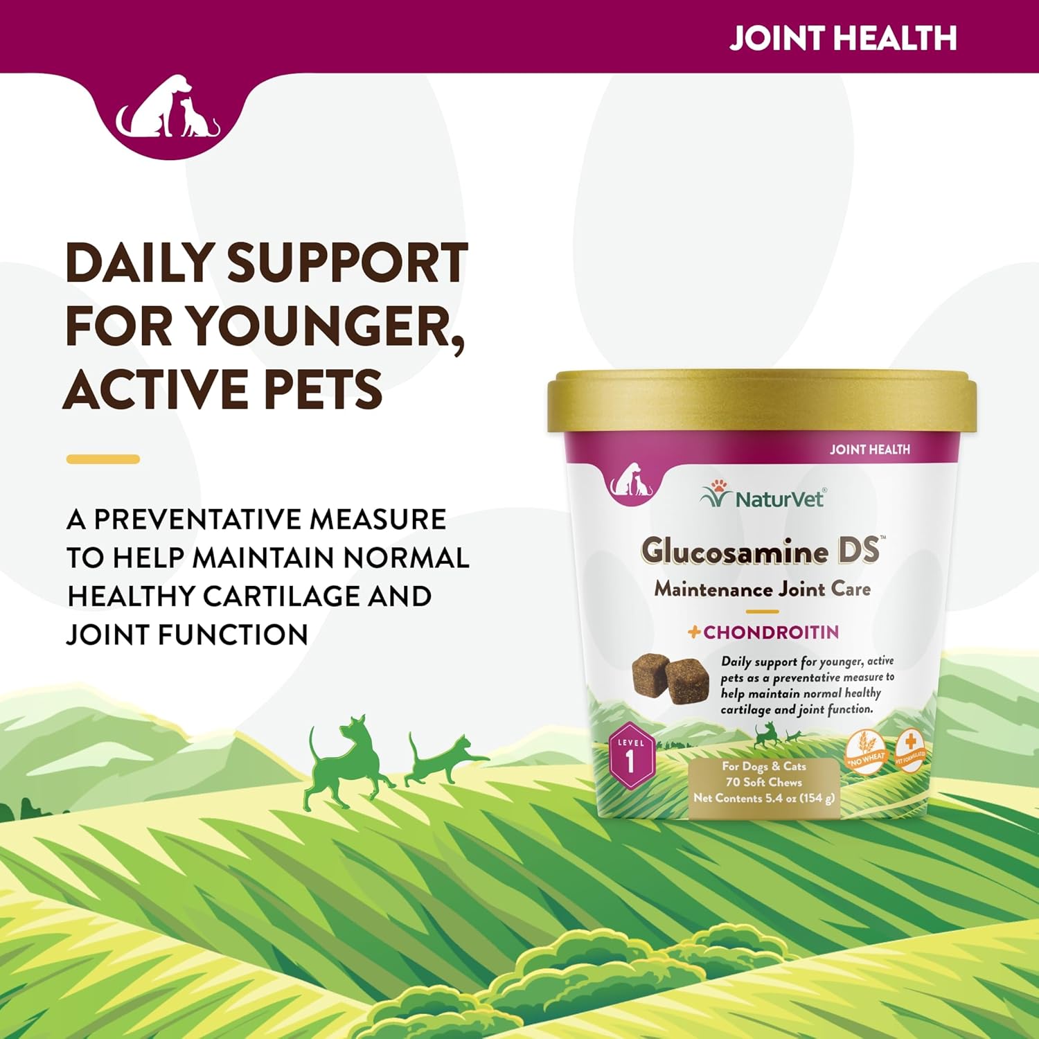 NaturVet Glucosamine DS Level 1 Maintenance, Joint Care Support Supplement for Dogs and Cats, Soft Chews, Made in The USA